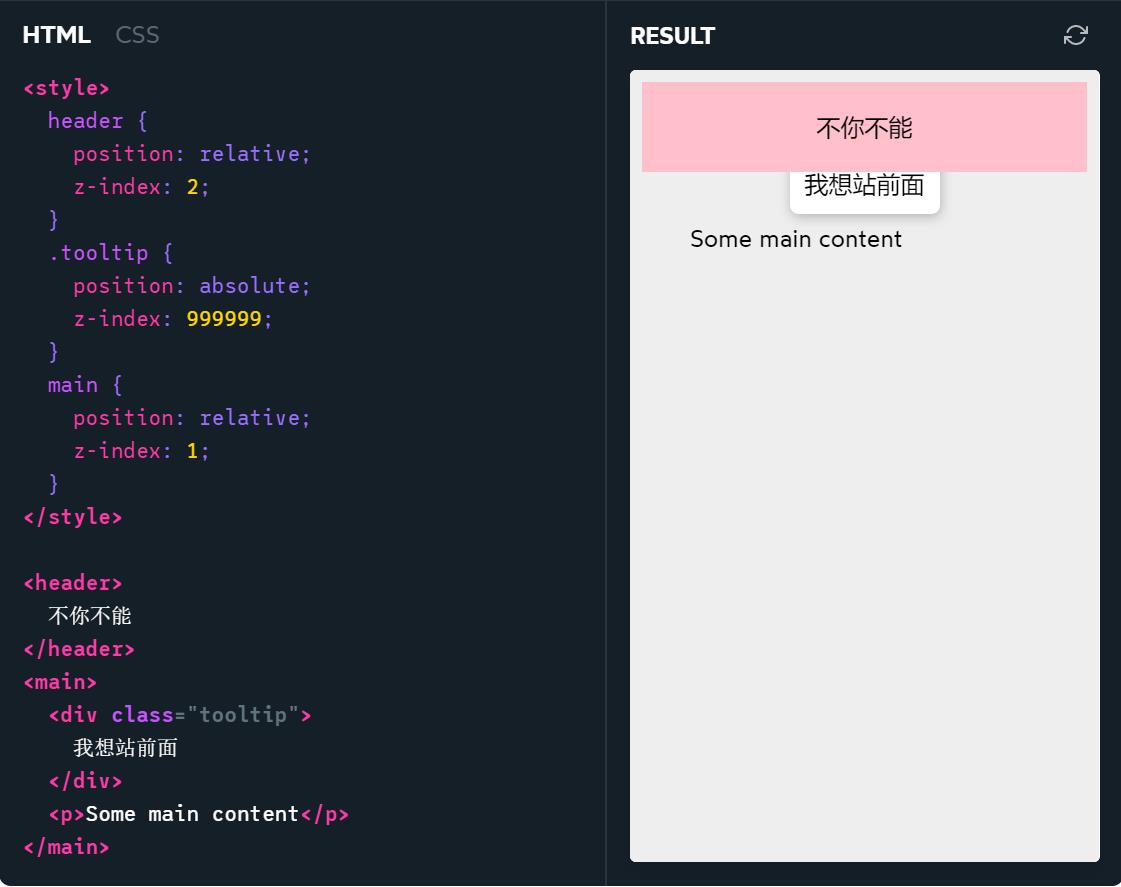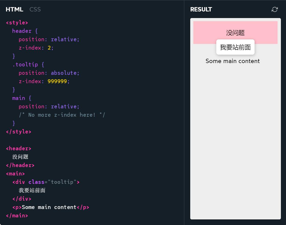可以很明显的看出.tooltip 的 9999 仅仅是在 main 这个层叠上下文中进行比较